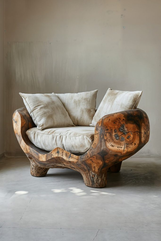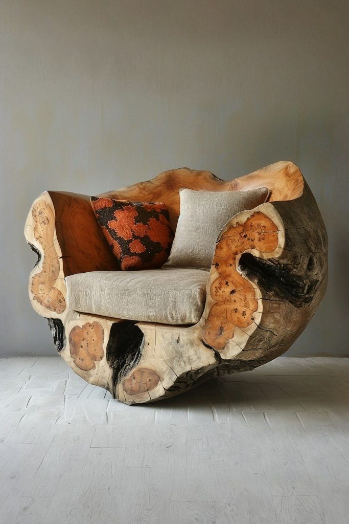 Cradled in the curves of ancient wood, Earth Nest invites stillness and comfort. Each swirl grain tells a story grounding your space with warmth, nature, and elegance.