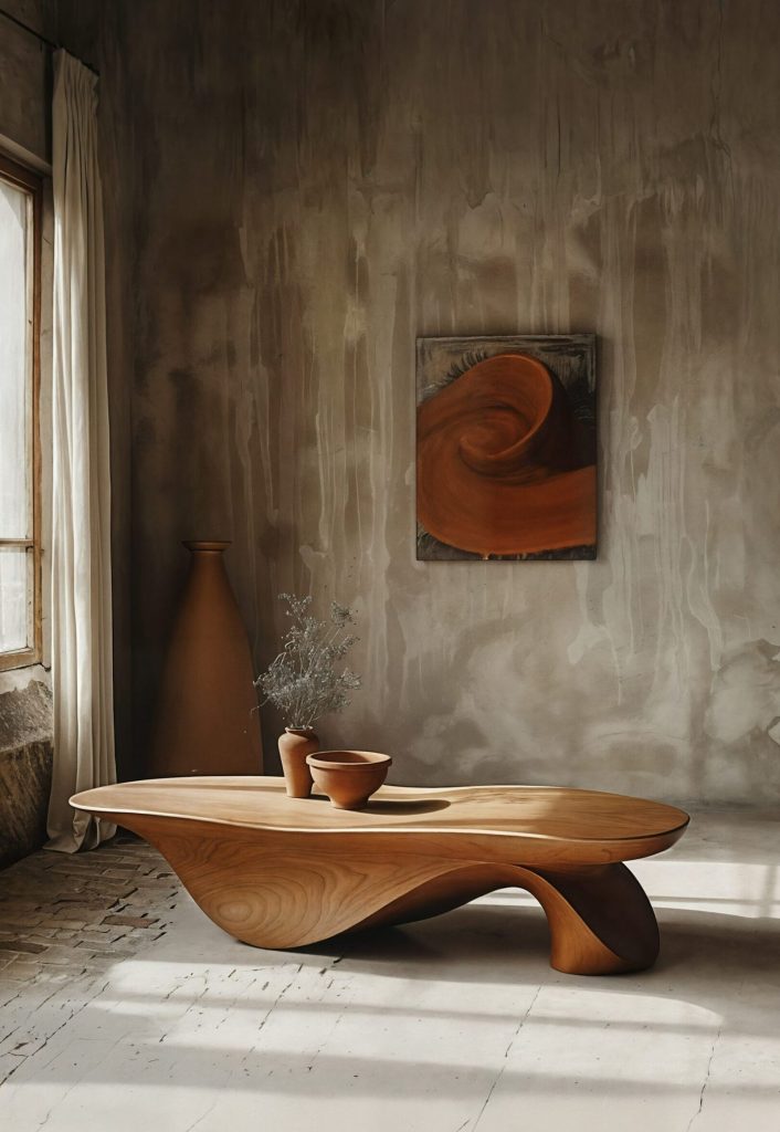 Our collection includes sculptural chairs, elegant dining tables, and organic coffee tables — all carved from solid wood and designed to bring presence, warmth, and timeless beauty into your space.
